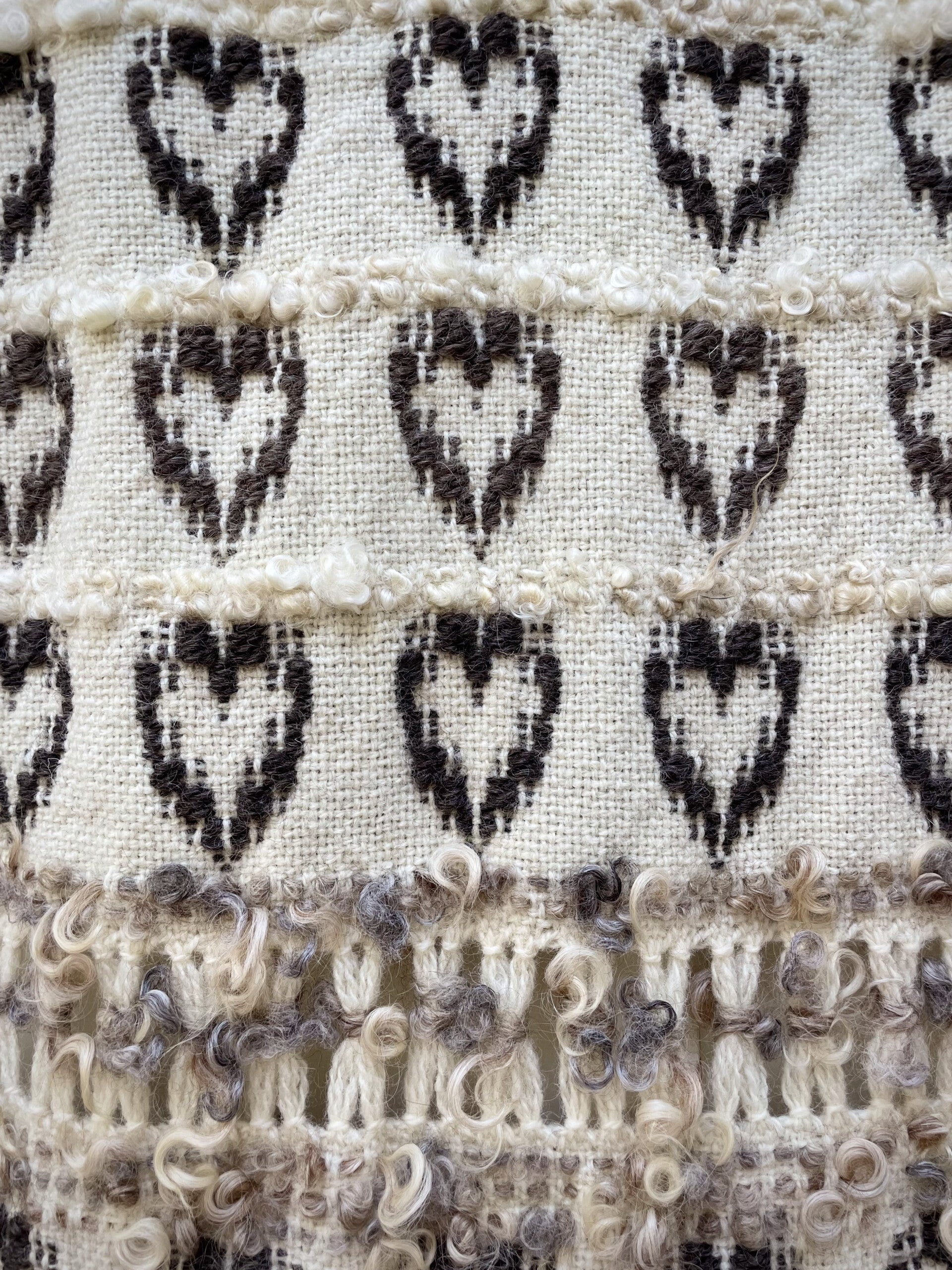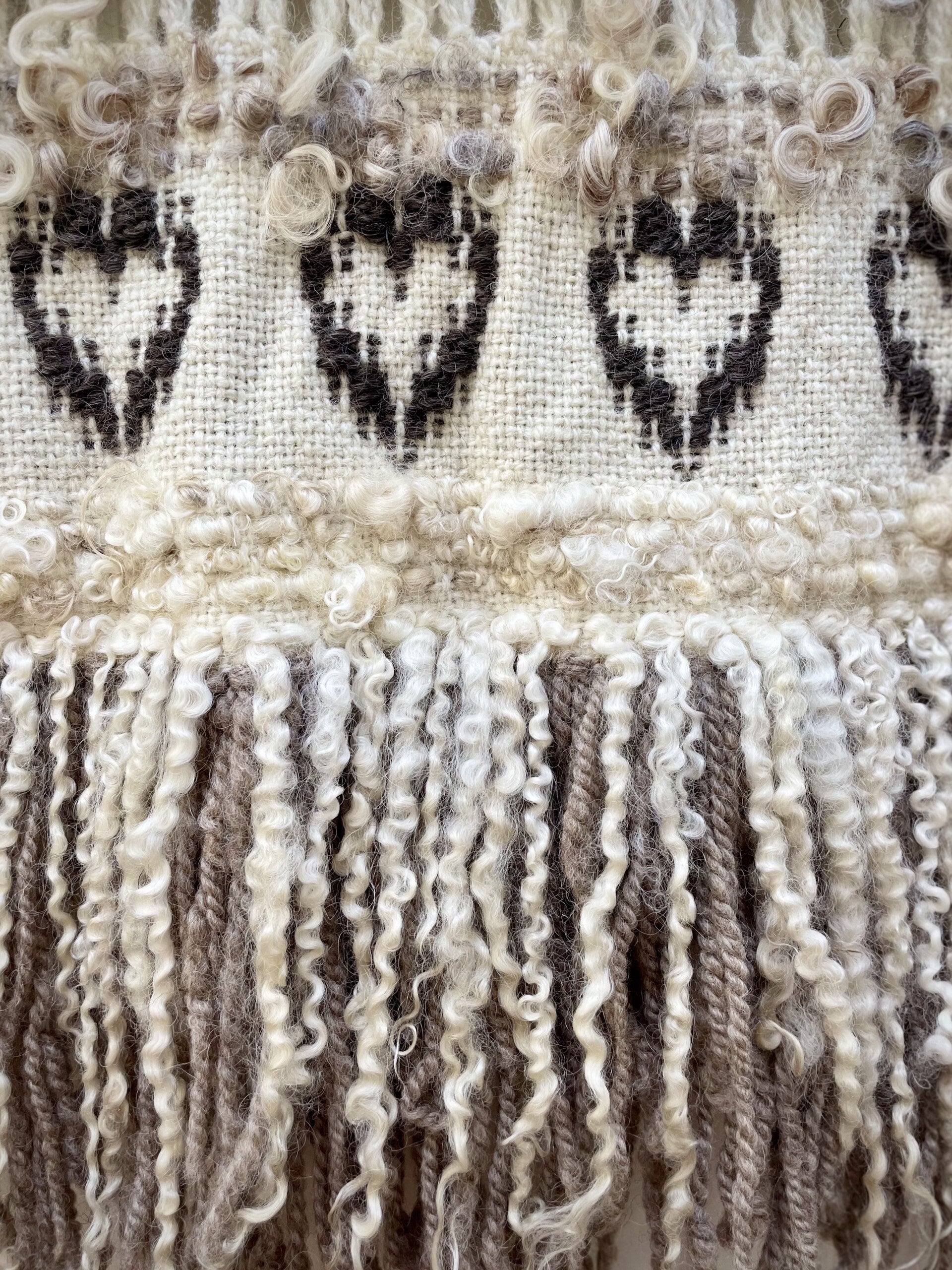 Hearts: handwoven wall hanging: natural wool and wool locks